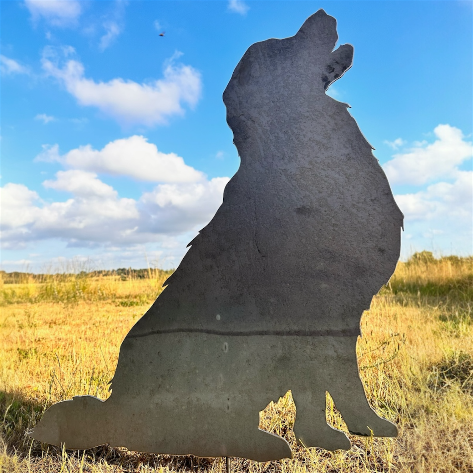 Hundens mål er ca H 75 cm. uden spyd